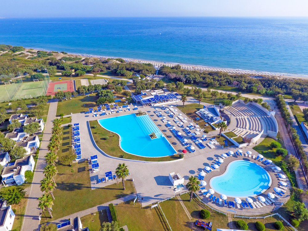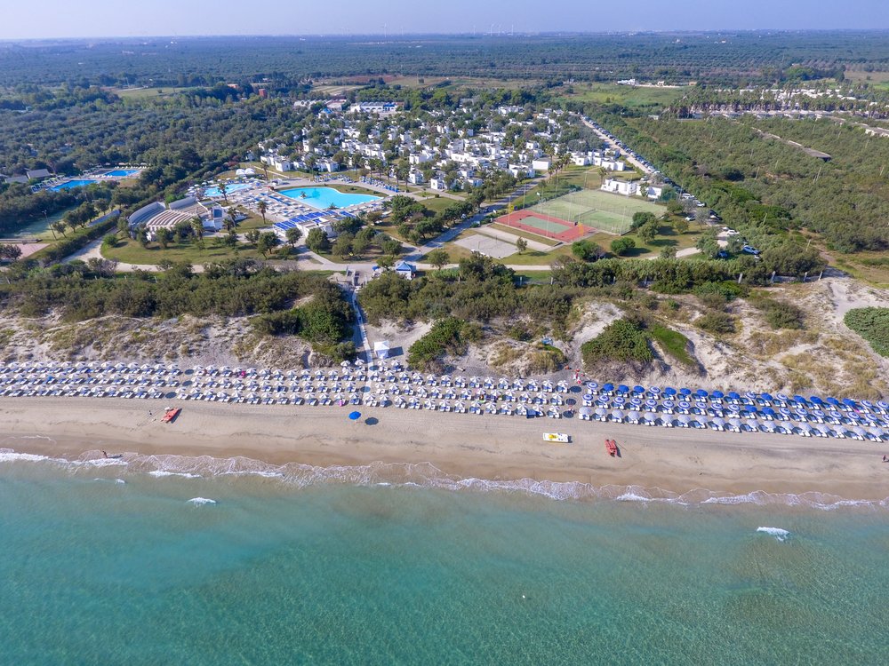 Disposto su un unico livello, il villaggio si estende su una superficie di circa nove ettari, direttamente sulla lunga spiaggia di sabbia fine circondata da suggestive e millenarie dune. L’architettura è caratterizzata dall’uso delle tecniche e dei materiali tipici del luogo, intrecciando al bianco i più tenui colori del salento. Gli ampi spazi verdi, la varietà delle attività proposte, la particolare attenzione rivolta a bambini e ragazzi, lo rendono indicato alla vacanza di tutta la famiglia.